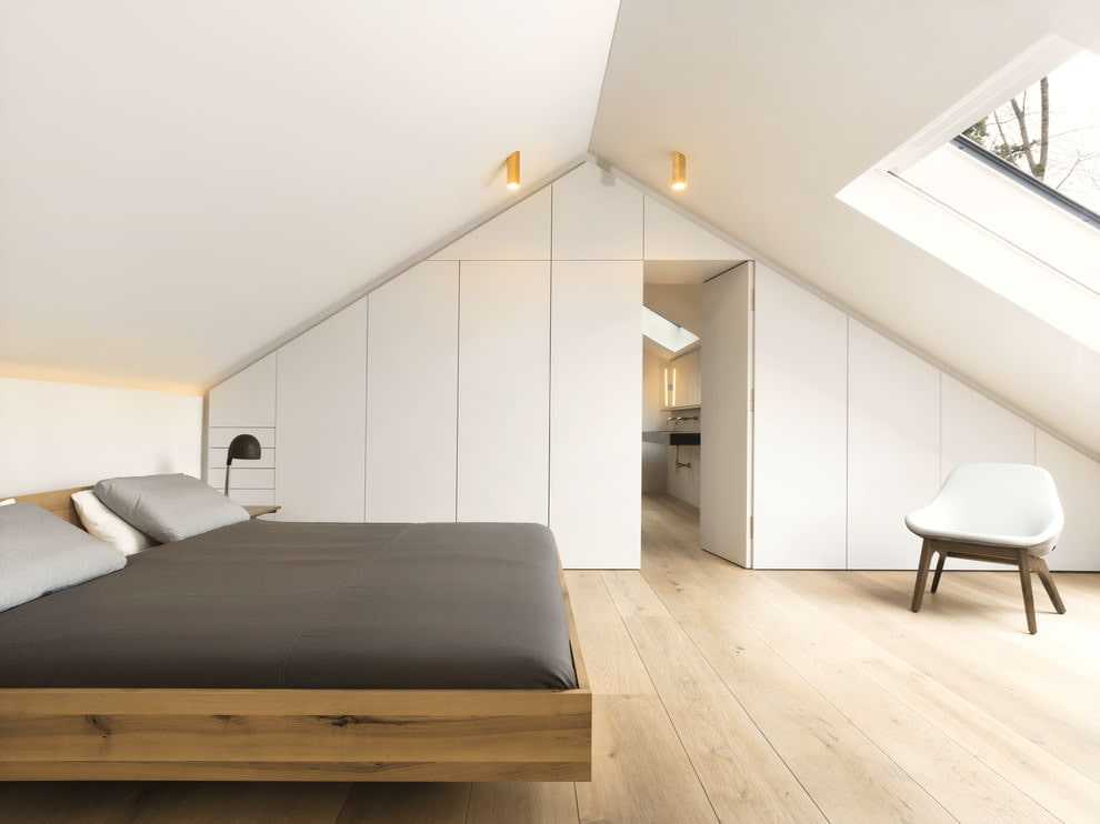 Спальня в стиле минимализма на мансарде – минимум декора, максимум света и простора