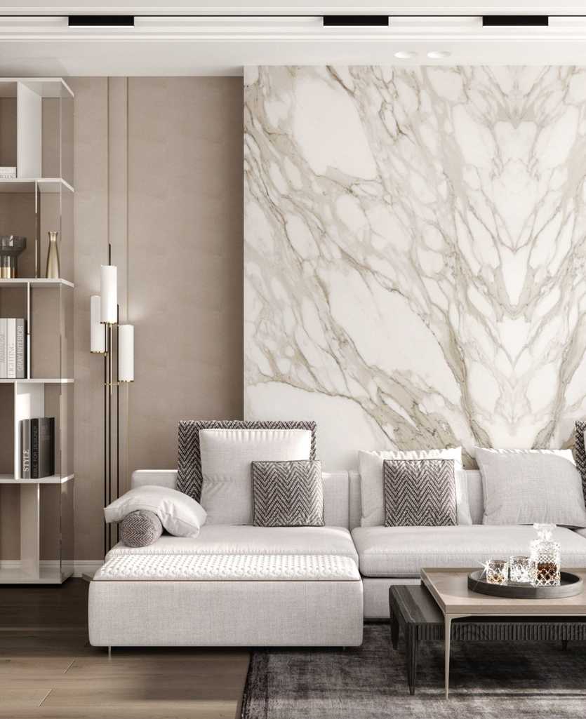 Ткани со сложными дизайнерскими рисунками, обои с сюжетными принтами не подойдут: минимализм это про красоту природных материалов. Мрамор, оникс, песчаник, травертин, дерево подбираем с максимально выразительными срезами.