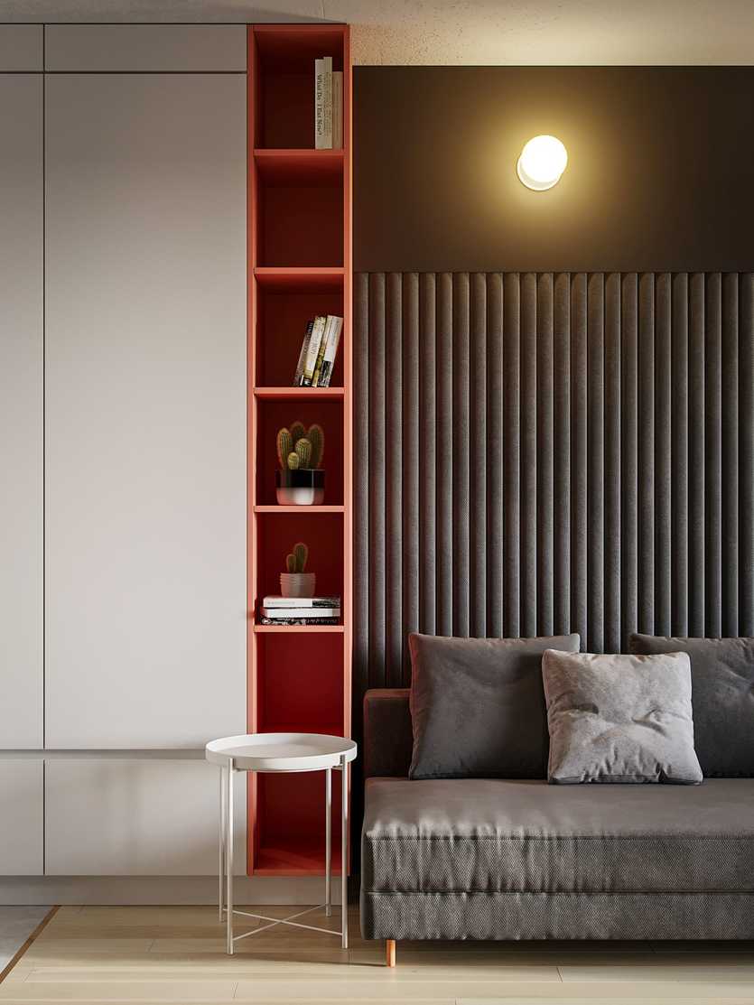 ФОТО: static.tildacdn.comСпрячьте двери в стене, чтобы не создавать лишних линий и сочетаний цветов