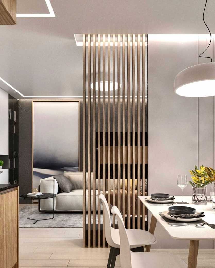 Хороший дизайнерский прием – наличие реечных перегородок или вставок: если правильно продумать направление света, падающие от реек тени добавят помещению архитектурности.