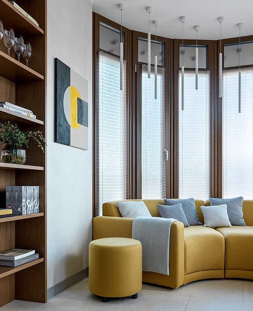 Современные интерьеры в стиле минимализм разбавлены веселыми и теплыми желтыми оттенками, которые выглядят замечательно с прохладными синими и зелеными цветами.