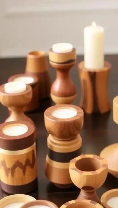 Подсвечники из дерева – создадут уютную атмосферу в доме. Вырежьте подсвечники из небольших брусков дерева или используйте спилы. Украсьте подсвечники резьбой или росписью.