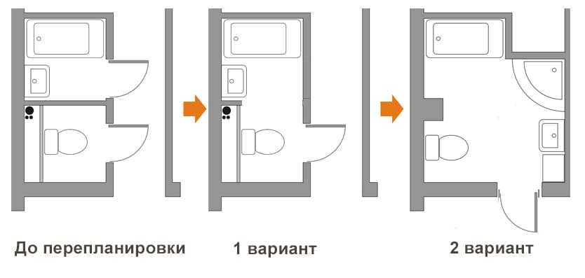 Разделенный или совмещенный санузел непозволительно маленьких размеров – первый пункт списка. Разобраться с ним можно малой кровью: если общей площади туалета и ванной комнаты жильцам достаточно, то работы ограничатся одной снесенной перегородкой. В противном случае расширят санузел позаимствованные у кухни или коридора сантиметры.