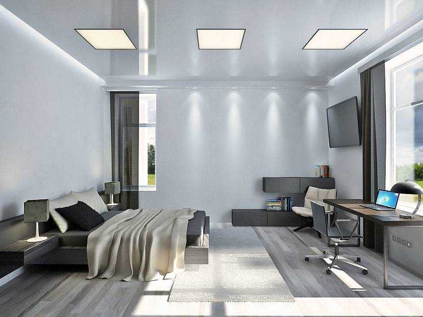 Оригинальной должна быть и отделка комнаты: многоярусный потолок с интересной системой освещения, жидкие обои, пол с 3D рисунком. А, что касается декора, то от него следует отказаться.