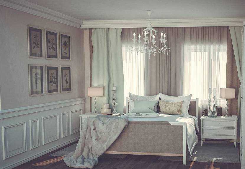 Классический интерьер спальни с двумя окнамиИсточник arteltrud.ru