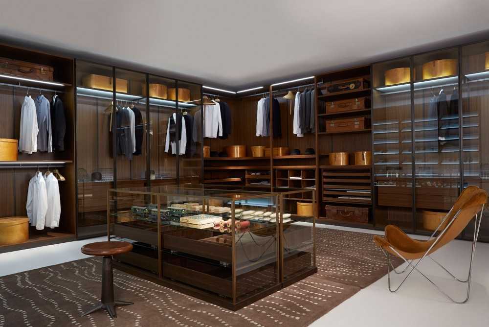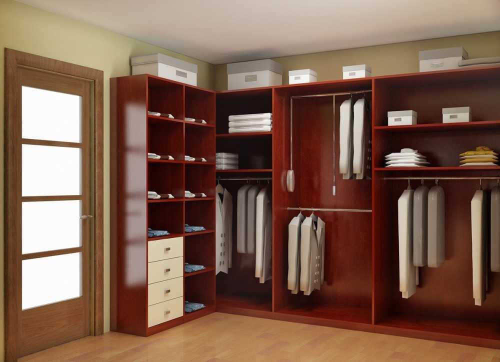 Если пространства крайне мало, то лучше использовать как можно больше открытых полок. Не забывайте, что поверхность распашной двери можно также задействовать: там могут расположиться крючки для галстуков или органайзер для всяких мелочей.