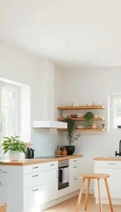 Материалы: Используйте натуральные материалы, такие как дерево, камень и лен, чтобы создать уютную и экологичную атмосферу. Деревянные полы на кухне – отличный выбор.