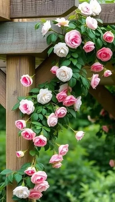 Розы – классический выбор для оформления пергол и арок. Плетистые розы требуют регулярной обрезки, подкормки и защиты от болезней. Предпочитают солнечные места и плодородную почву. В 2025 году, как и в 2024, популярны английские розы с их обильным цветением и неповторимым ароматом.