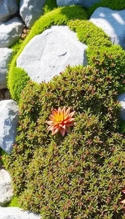 Чабрец ползучий – идеальный почвопокровник. Санвиталия дарит яркое цветение. Очиток (Седум) – засухоустойчив и разнообразен. Гвоздика перистая эффектна и проста. Ясколка войлочная – нежный ковер.