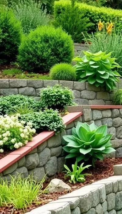 Подпорные стенки: Используются для создания террас и удержания почвы. Материалы для подпорных стенок могут быть разными: камень, дерево, бетон. Выбор материала зависит от стиля сада и бюджета.