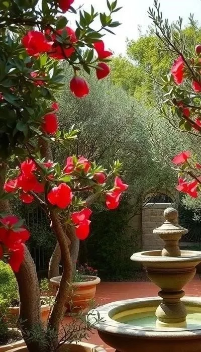 2. Итальянский дворик с фонтаном и цитрусовыми деревьями: Воплощение элегантности и изысканности. Фонтан станет центральным элементом композиции, а цитрусовые деревья добавят аромата и свежести.