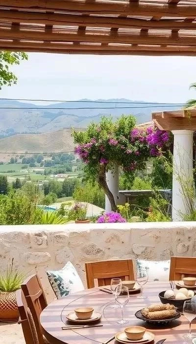 Особое внимание уделяется созданию террас, которые становятся продолжением дома. Идеи для террас в средиземноморском стиле включают использование деревянных или кованых конструкций, обложенных подушками и текстилем, а также установку навесов, увитых виноградом или глицинией. Растет спрос на беседки, оформленные в этом стиле, которые служат уютными местами для отдыха и общения.