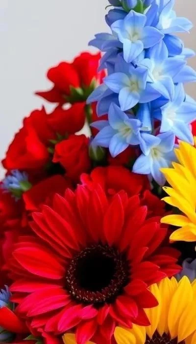 - Яркие контрасты: Сочетание насыщенных цветов, создание эффектных и запоминающихся букетов.