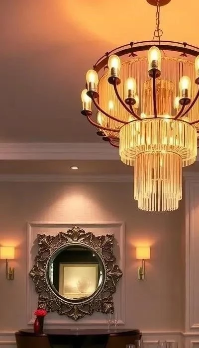 - Традиционное освещение: Центральная хрустальная люстра, настенные бра, торшеры для торжественной атмосферы.