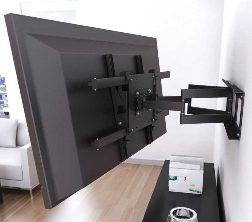 Они позволят отрегулировать угол наклона устройства во время просмотра и выбрать наиболее удобное положение для конкретной ситуации. Система крепления должна быть предназначена строго для телевизора, поскольку другой вариант может не выдержать вес устройства. Кронштейны следует периодически подкручивать для более надежной фиксации