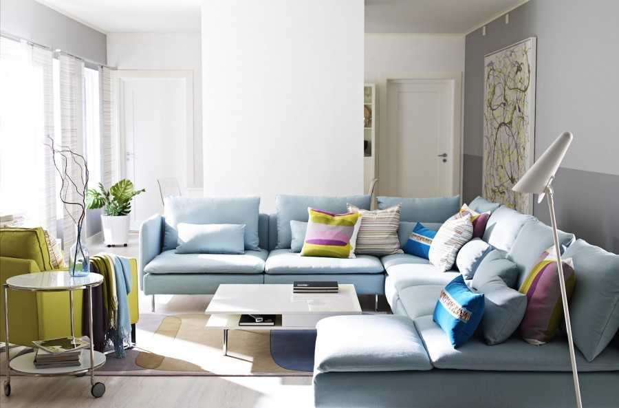 Мягкая мебель для гостиной от Икеа представлена широким ассортиментом моделей в разных стилях. Здесь вы встретите и классические диваны, и угловые, и мебель на ножках, и модели на цоколе, который плотно прилегает к полу. Не менее широкой является и палитра обивочных тканей, в которых представлены все актуальные цвета: