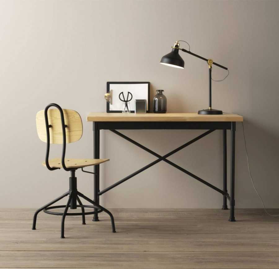 Хемнэс имеет две тумбы и полку под столешницей. Изготовлен из массива сосны, покрытого морилкой и лаком, что делает его экологически чистым. Компьютерные провода прячутся на полке под столешницей. Нижний ящик оборудован регулируемой рамой для бумаги и файлов. Задняя и передняя части отделаны, что позволяет расположить стол по центру помещения. Модель стоит 16999 рублей;