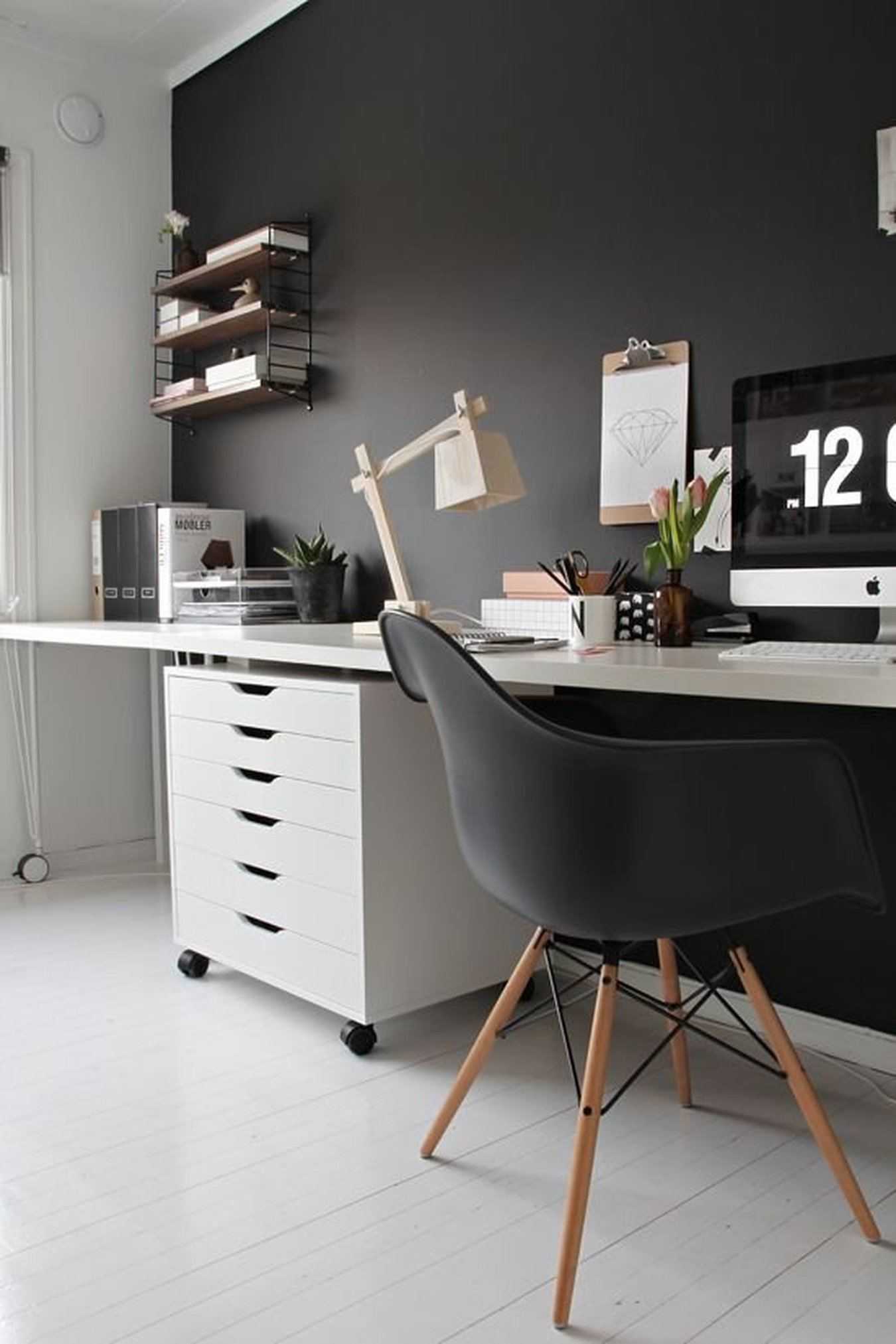 Первое, что придет в голову большинству, конечно, цветы. Но в данном случае мы хотим посоветовать нечто более неприхотливое и полезное – кактусы. Помимо того, что кактусы не вгонят вас в печаль своим увядающим видом, они еще и скрадут часть вредных излучений от всяких гаджетов, которых у вас на столе наверняка предостаточно. А поселить кактус или суккулент можно вот в таком стильном (и фотогеничном) флорариуме совершенно любой формы.