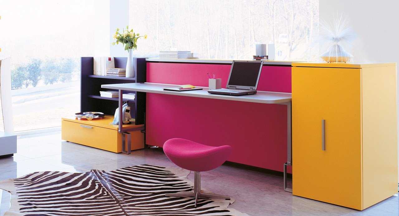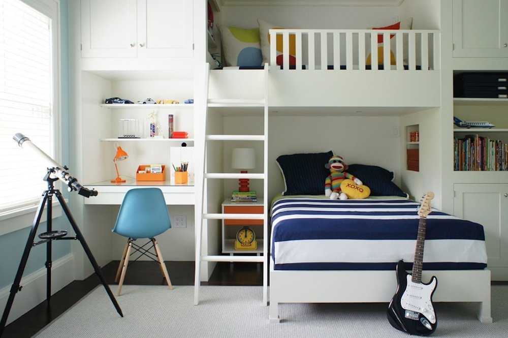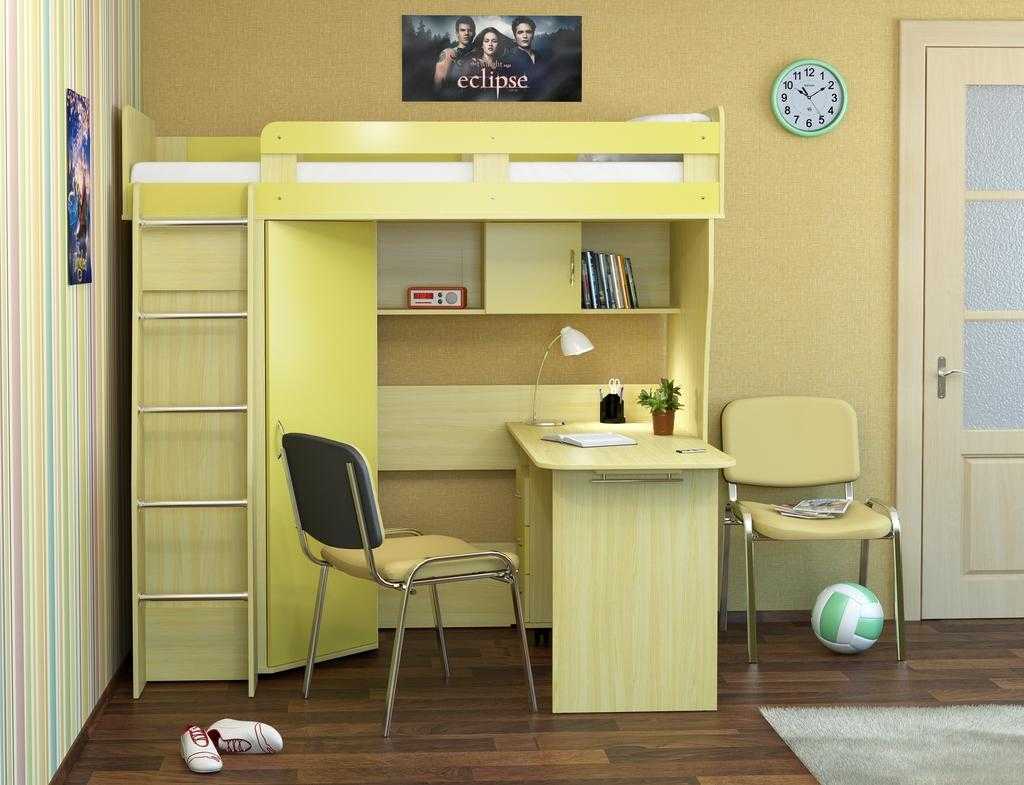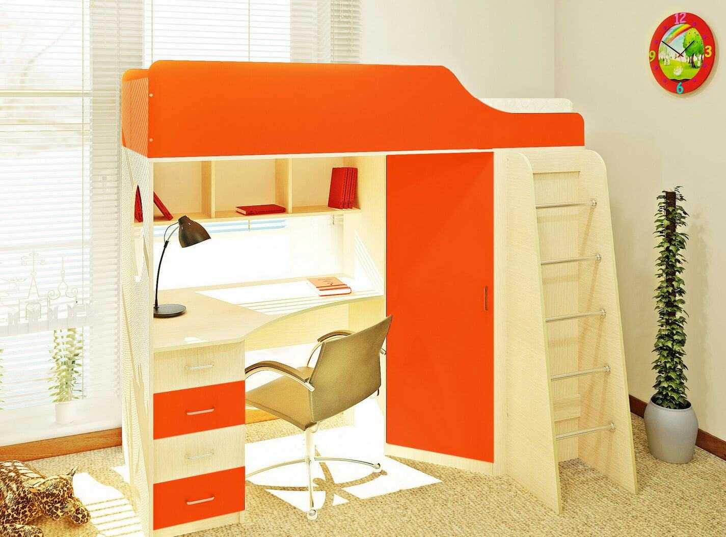 Существуют системы «кровать-чердак». Под постелью располагается стол. В итоге получается детский мини-кабинет.