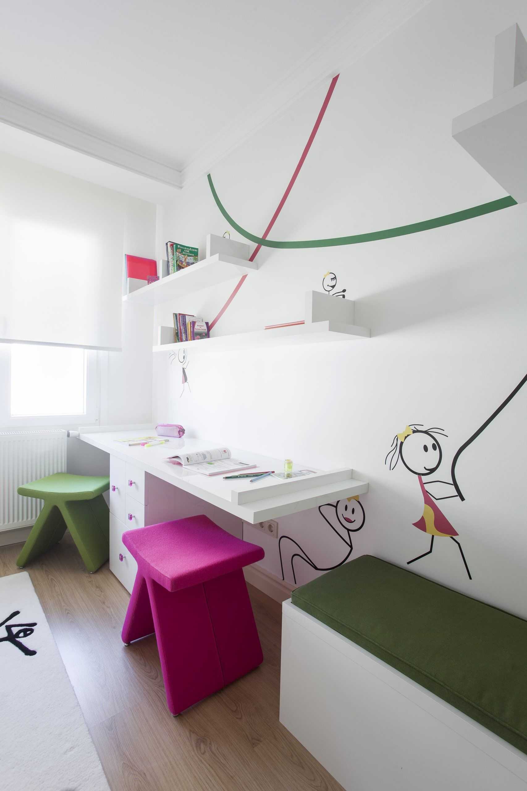 Сделать место для учебных и творческих занятий детей у окна по-настоящему комфортным можно разными способами. При этом следует руководствоваться габаритами помещения, стилевыми предпочтениями, но не стоит забывать учитывать мнение самих школьников, ведь именно им предстоит каждый день проводить в комнате свое свободное от учебы время.