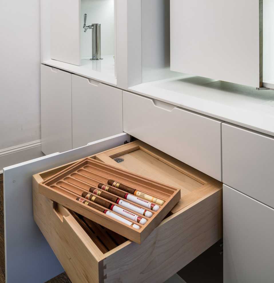 В нижнем выдвижном ящике хранятся элитные сорта сигар, также здесь можно хранить настольные игры: нарды, шахматы, шашки, домино и карты.