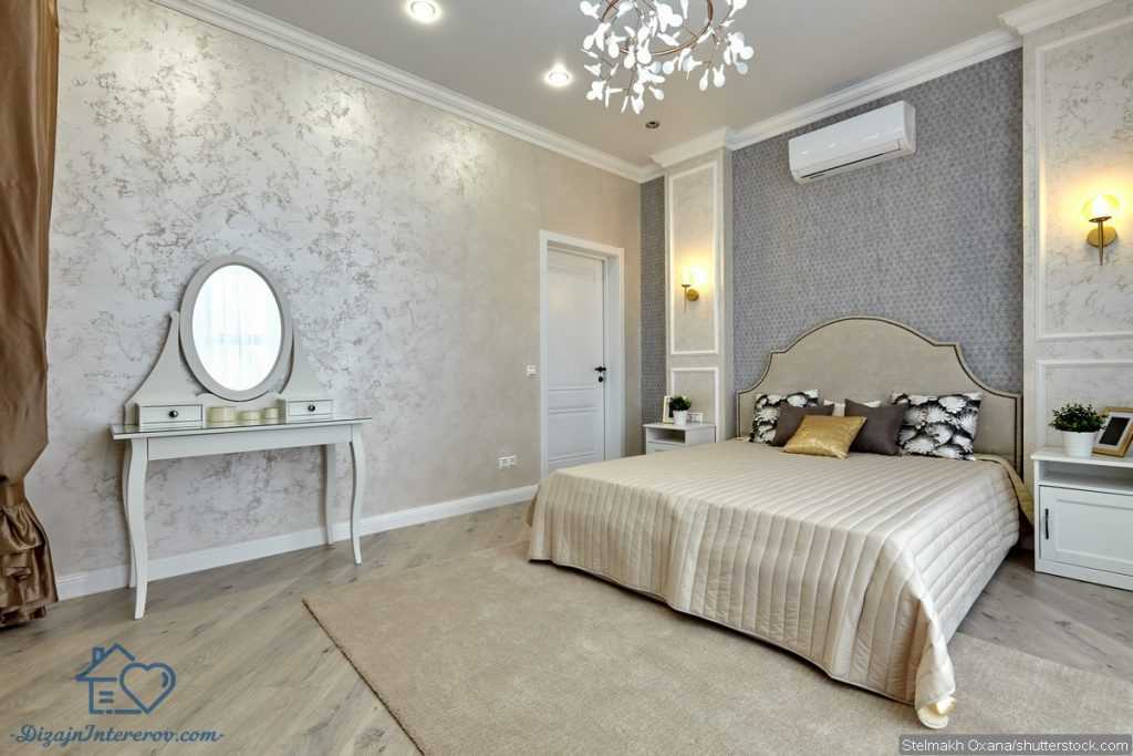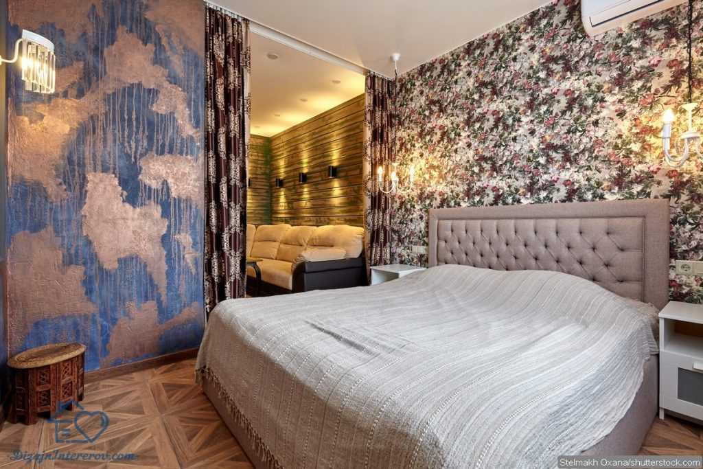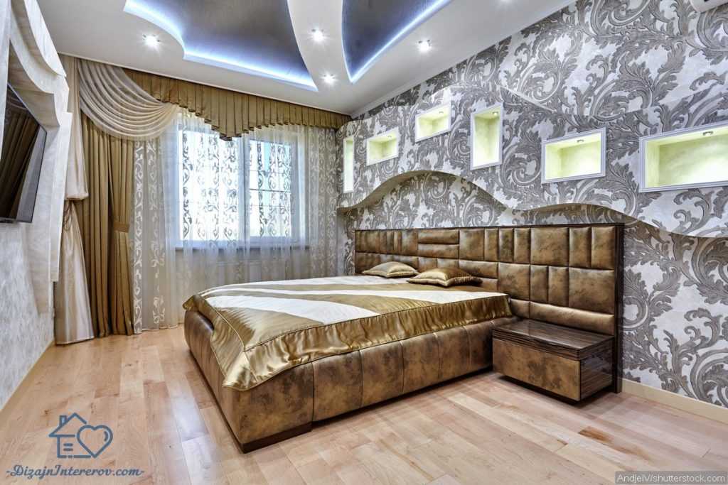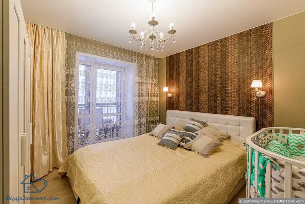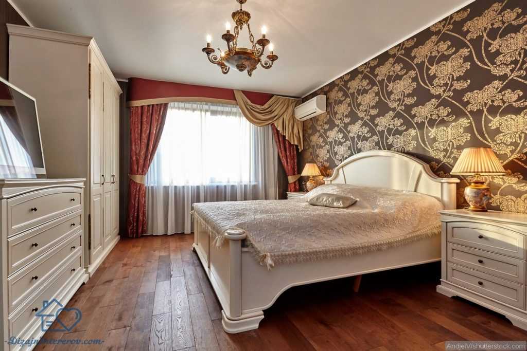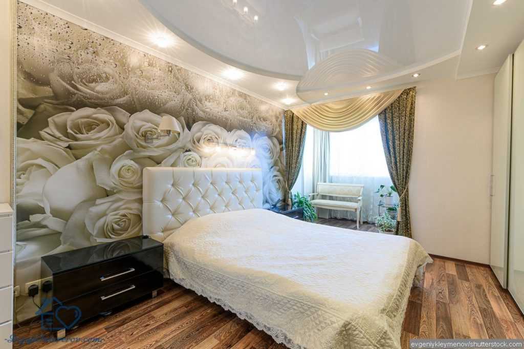 Если вы хотите использовать в вашей спальне обои, совсем не обязательно оклеивать все стены только одним их видом. Можно подобрать несколько подходящих и воплотить оригинальную и красивую идею.