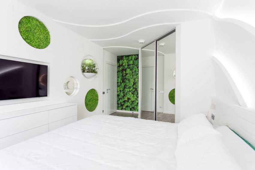 Такое оформление поможет создать современный дизайн. Совсем отказываться от тёмных тонов не стоит. Насыщенный цвет подчеркнёт зоны, разнообразит однотонный интерьер.