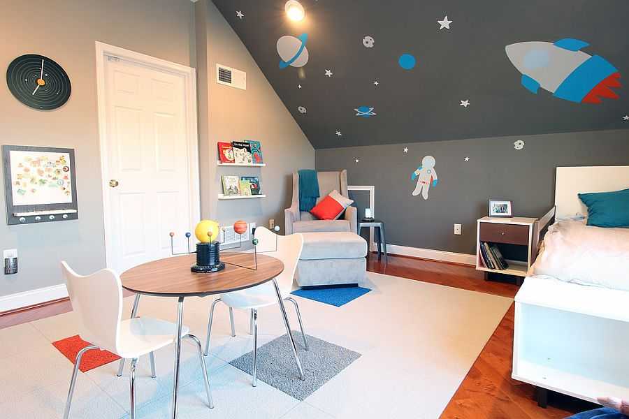 Я не сторонник слишком детсадовских ремонтов и строго тематичных комнат. Слишком быстро меняются 5 правил. Но есть пара долгоиграющих вариантов.