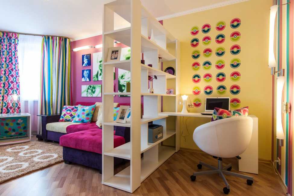 Стеллаж-перегородка в интерьере детской