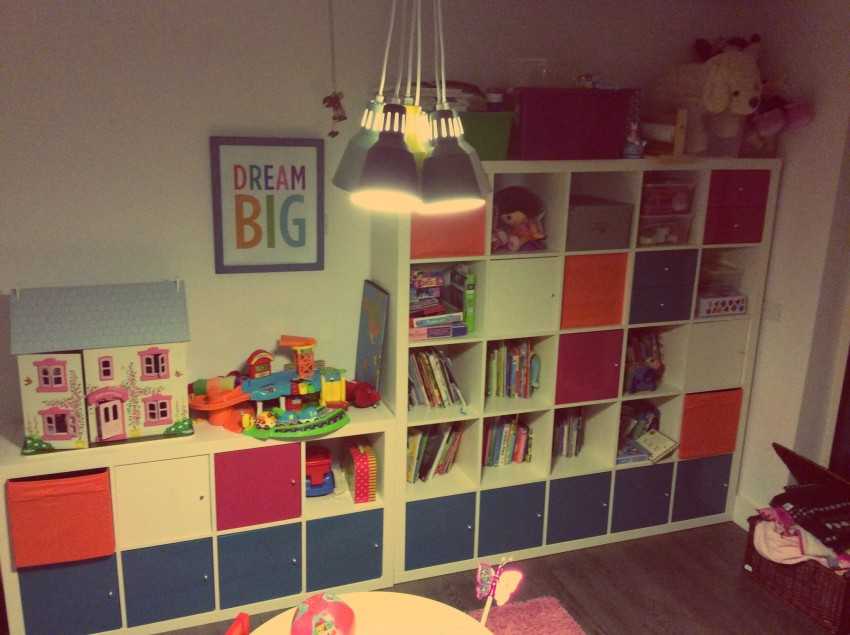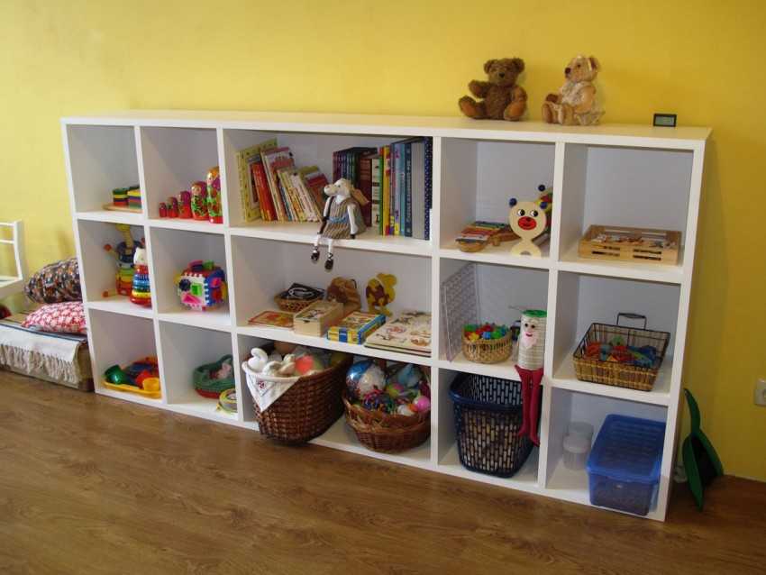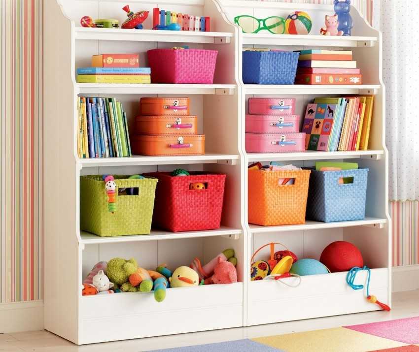 Хорошим примером здесь будет детский стеллаж от икеа. В дополнении к нему можно приобрести специальные коробки, в которые легко поместить мелкие детали конструктора, пазлов и другие элементы.