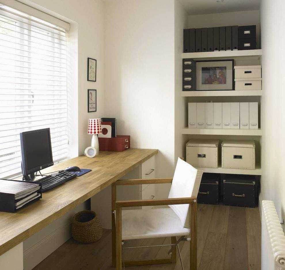 - Стол для работы – создает практичный интерьер. Площадь под столешницей, над ней максимально используется, часто оборудуется полками, шкафчиками для различных принадлежностей.