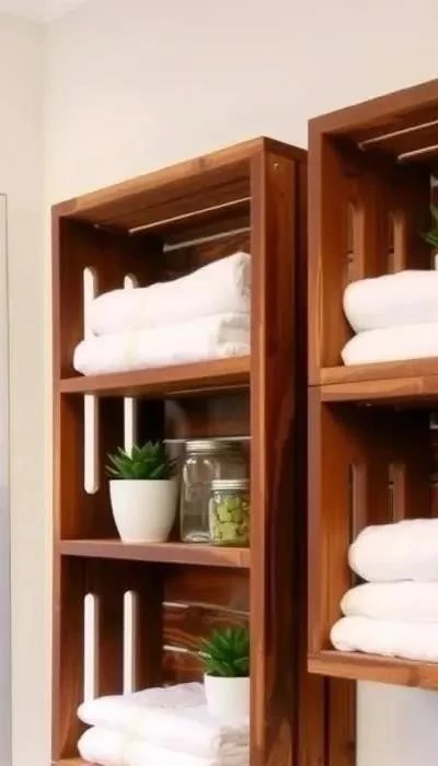 - Полки из деревянных ящиков: Старые деревянные ящики – отличный материал для создания полок. Их можно покрасить, отшлифовать и закрепить на стене. Плюсы: простота, доступность, рустикальный стиль. Минусы: необходимость обработки дерева от влаги.