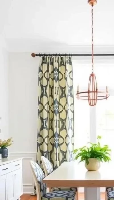 Размеры столовой: В небольших помещениях лучше использовать мелкие геометрические узоры светлых оттенков, чтобы визуально расширить пространство. В просторных столовых можно смело экспериментировать с крупными принтами и насыщенными цветами.