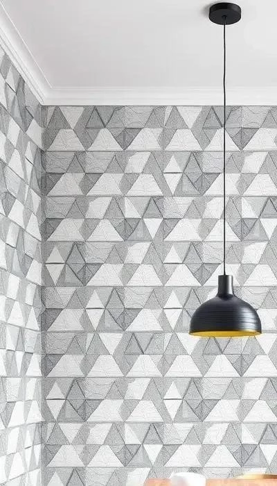 Акцентная стена: Выделите одну стену геометрическим принтом, чтобы создать фокусную точку и визуально расширить пространство.
