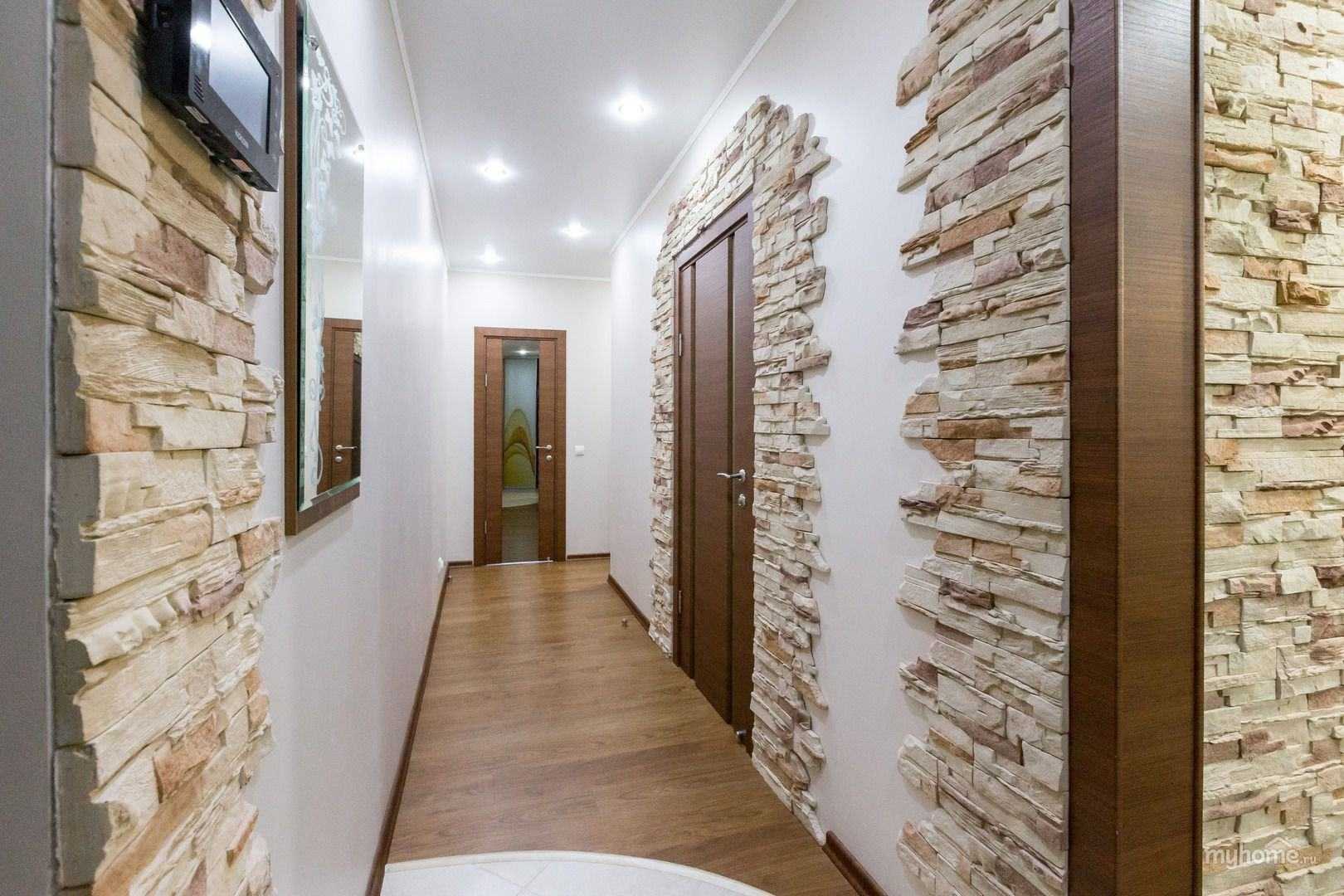 Декор прихожей угловой каменной кладкой.