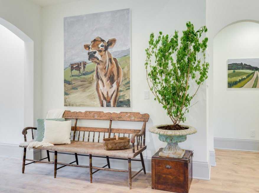 Можно поставить старомодное кресло или стул, небольшой столик или лавку в деревенском стиле.