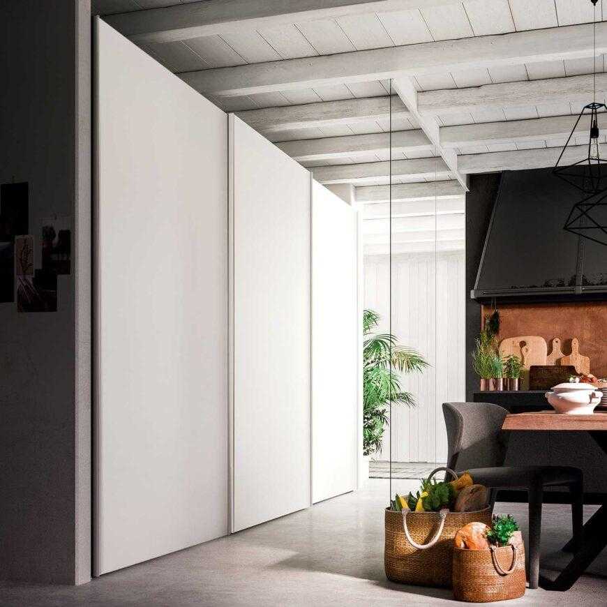 Стекло для фасадов систем хранения обычно матируют, тонируют, покрывают цветной эмалью, скрывая содержимое шкафов. Аккуратисты могут выбрать полностью прозрачные двери, чтобы продемонстрировать идеальный порядок на полках и вешалках.