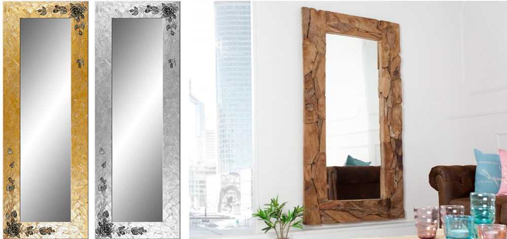 Зеркала напольные могут иметь разные размеры, около 170 см или более 2-х метров высотой. Высокие зеркала визуально поднимают потолок.
