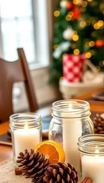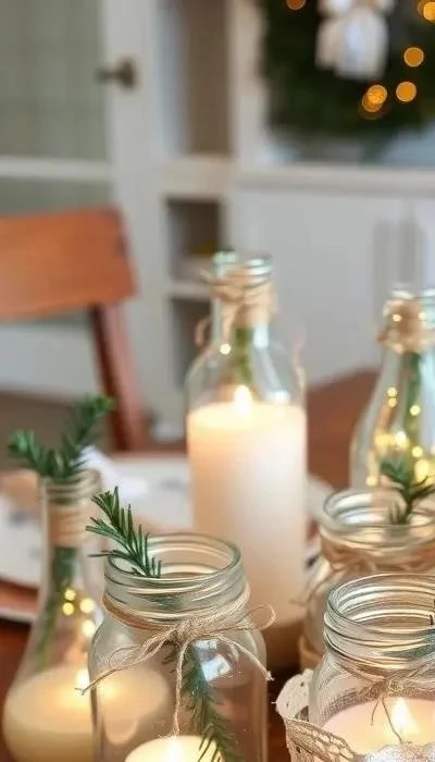 Мягкое освещение – залог уютной атмосферы. Создайте уникальные подсвечники из стеклянных банок или бутылок. Покройте их матовой краской, обмотайте шпагатом, украсьте сушеными апельсиновыми дольками, палочками корицы, шишками или еловыми веточками. Внутрь поместите небольшие свечи-таблетки или светодиодные гирлянды. Для более эффектного вида используйте несколько подсвечников разной высоты.