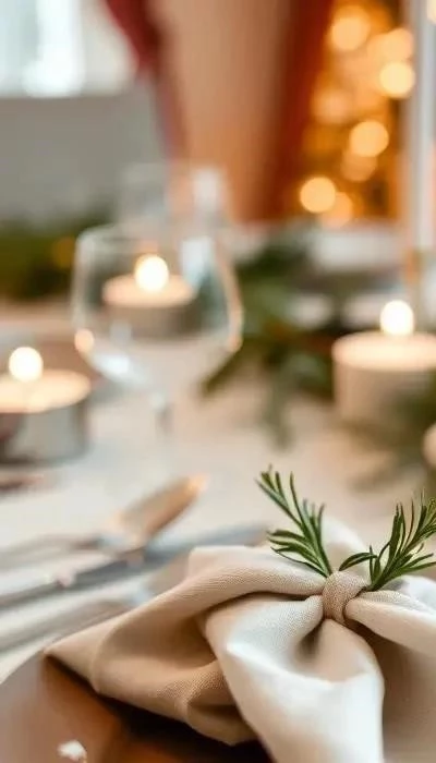 Простые тканевые или бумажные салфетки могут стать настоящим произведением искусства на вашем столе. Существует множество техник складывания: от элегантной «елочки» или «веера» до практичных «кармашков» для столовых приборов. Выбирайте салфетки из натуральных материалов, таких как лен или хлопок, чтобы подчеркнуть тренды года. Добавьте небольшую веточку розмарина или палочку корицы в сложенную салфетку для аромата и дополнительного шарма.