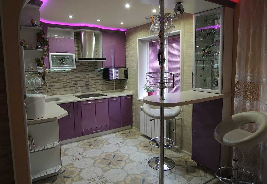 Для кухни 9 кв м в стандартном панельном доме барная стойка — редкость, но при наличии она используется как обеденный стол, если количество человек в семье невелико, и как кладовая.