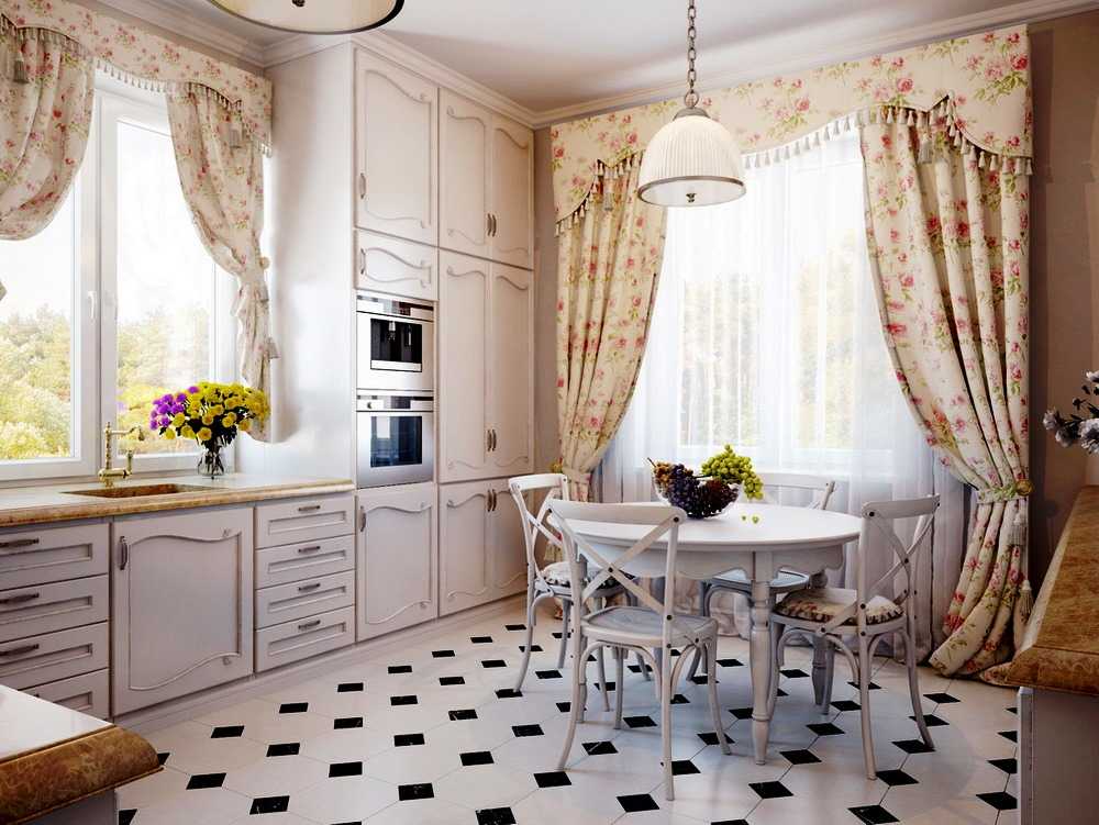 - На кухне в деревенском стиле лучше всего будут смотреться маленькие ламбрекены.