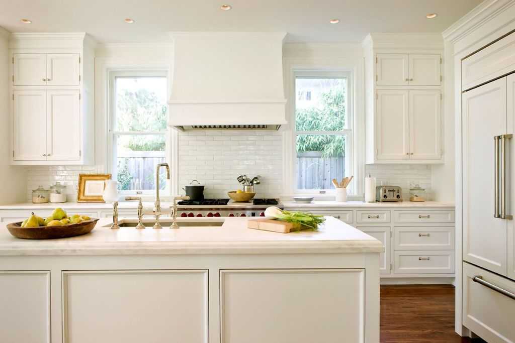 Лучше всего, чтобы два окна располагали кухонную мебель вдоль оконной линии. Важным моментом является уровень подоконника. Если он совпадает с высотой столешницы, он будет служить его продолжением, компенсируя тем самым пространство, занимаемое открытием окна. Если окно находится ниже столешницы, не переживайте — тогда оно может быть кухонным акцентом, украшенный декоративными элементами.