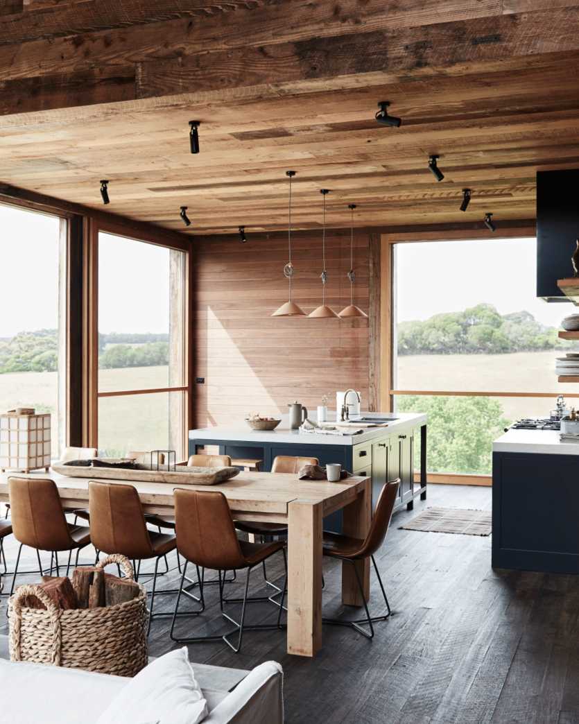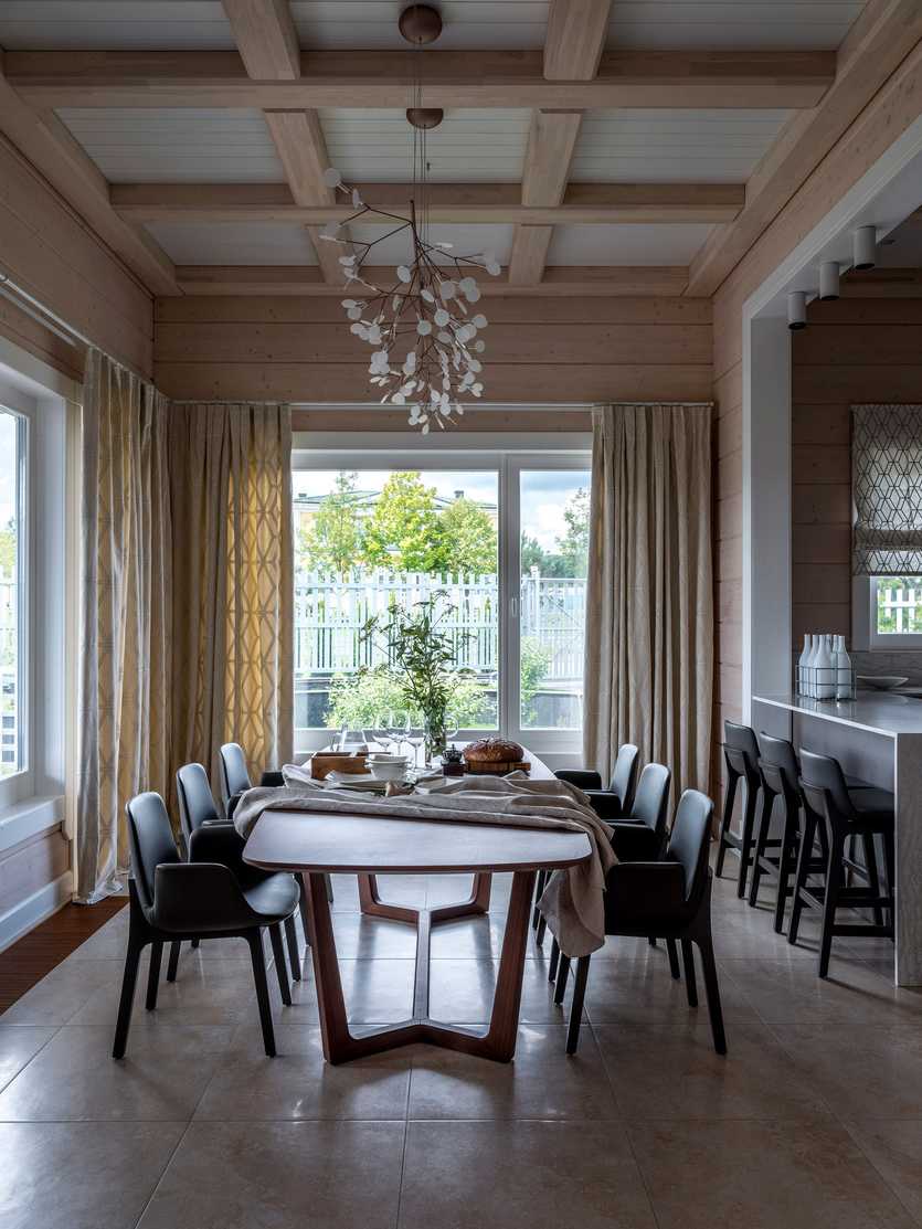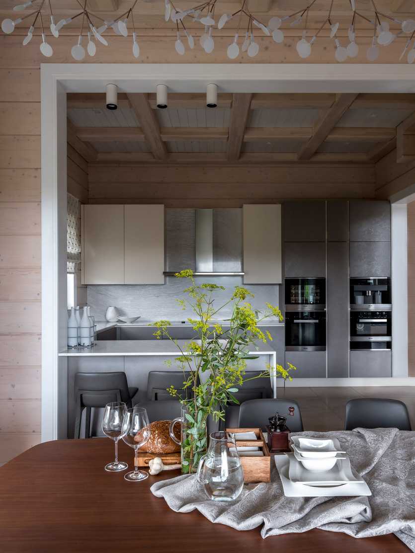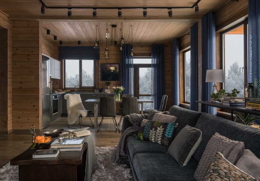 Внимание стоит уделить и деталям, а точнее подбору декоративных элементов, штор и остального текстиля. Дизайн кухни-гостиной в загородном доме должен быть продуман до мелочей