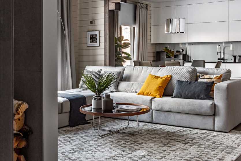 Дизайн гостиной с кухней должен быть хорошо продуман, а пространство эргономично спланировано. Почему? Потому что данная зона, помимо стилистической отделки, должна быть функциональной и удобной в использовании. Гостиная — очень важная комната в каждом доме. Это место отдыха и релаксации для семейных и общественных мероприятий. Поэтому стоит иметь зону с достаточным пространством для стола, дивана или уголка с журнальным столиком, чтобы не только хозяевам, но и гостям было комфортно. Кухня в свою очередь, — это сердце каждой квартиры. Здесь готовят еду и часто едят. Комната должна быть хорошо продумана, с достаточным количеством места для хранения и планирования. Стоит выбрать мебель по размеру, которую изготовит плотник, как правило, под точные параметры индивидуального интерьера.