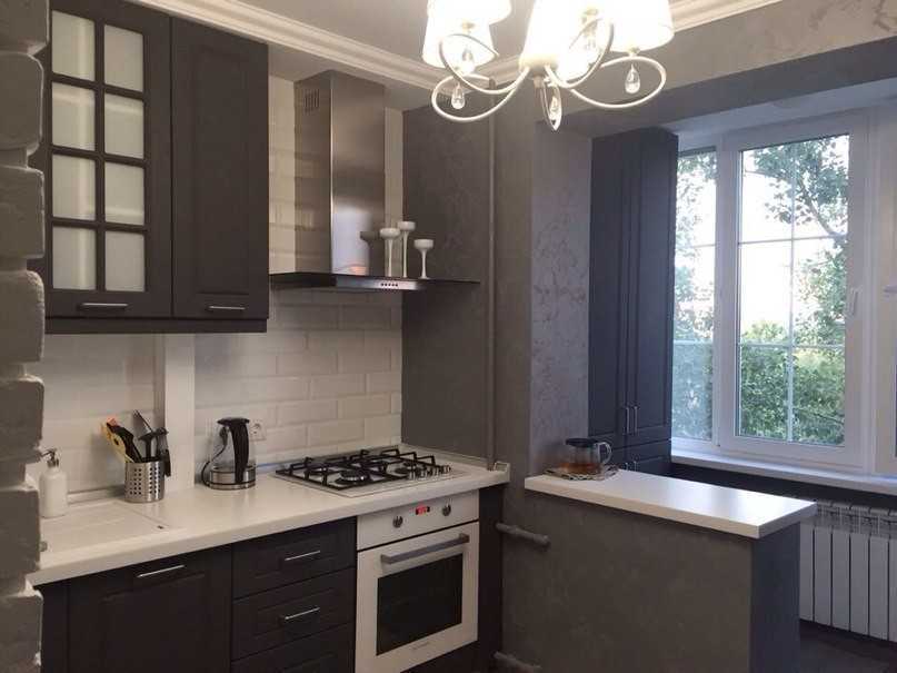 Если демонтаж стены оказался невозможным, то убрав окно, бывший подоконник легко превращается в дополнительную рабочую зону, которую можно использовать, как под приготовление пищи, так и в качестве барной стойки.