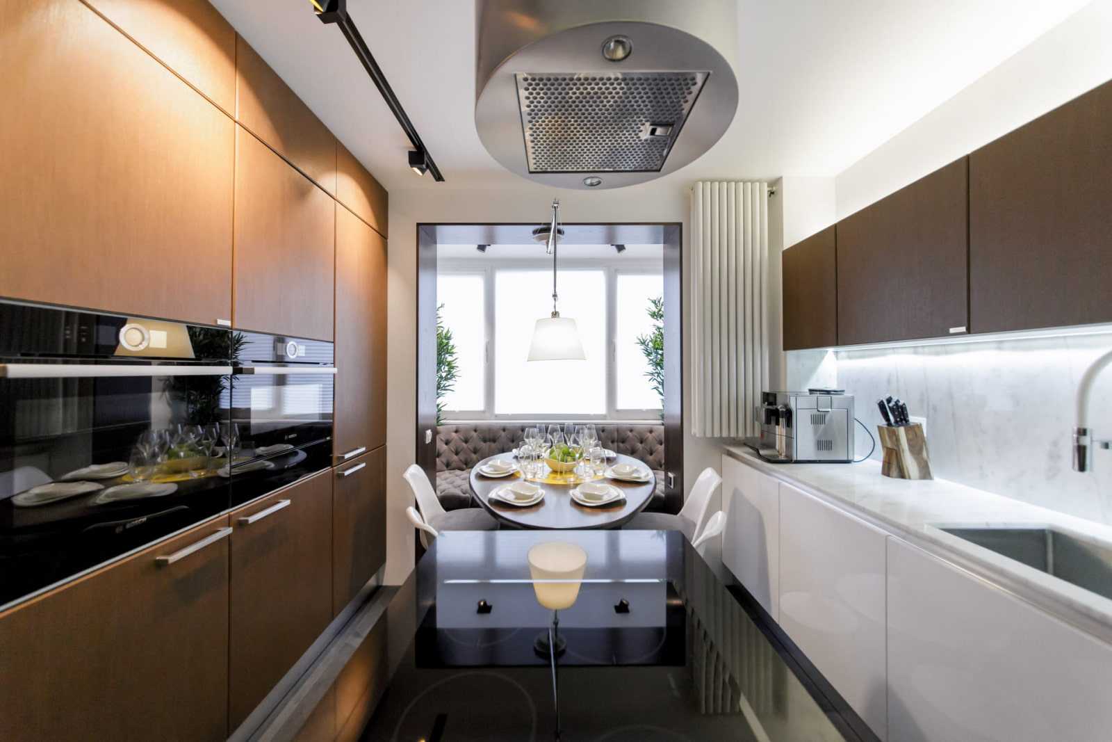 Преимущество объединения заключается не только в увеличении площади, но и оригинальности дизайна кухонь с балконом: