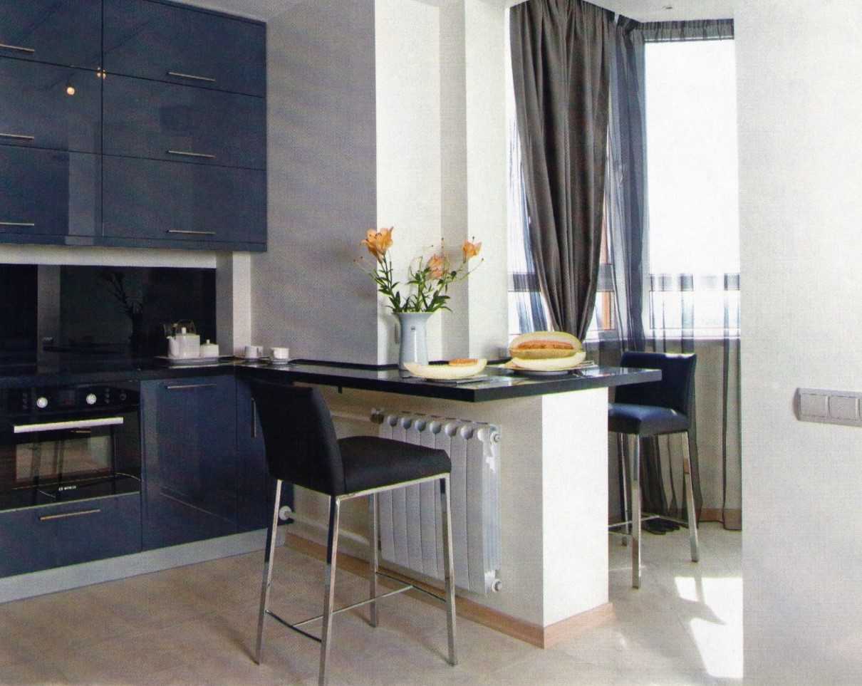 Бывает, что проект предполагает снесение стены между балконом/лоджией и кухней. Тогда придется согласовывать данный вопрос в разрешающих инстанциях. Если конструкция несущая, позволят убрать только окна/двери, но основание такой стены заставят сохранить. Однако это не повод отказываться от перепланировки, ведь оставшееся основание легко можно «обыграть» в интерьере — сделать барную стойку, оформить разделяющую пространство столешницу или предусмотреть дополнительную рабочую поверхность.
