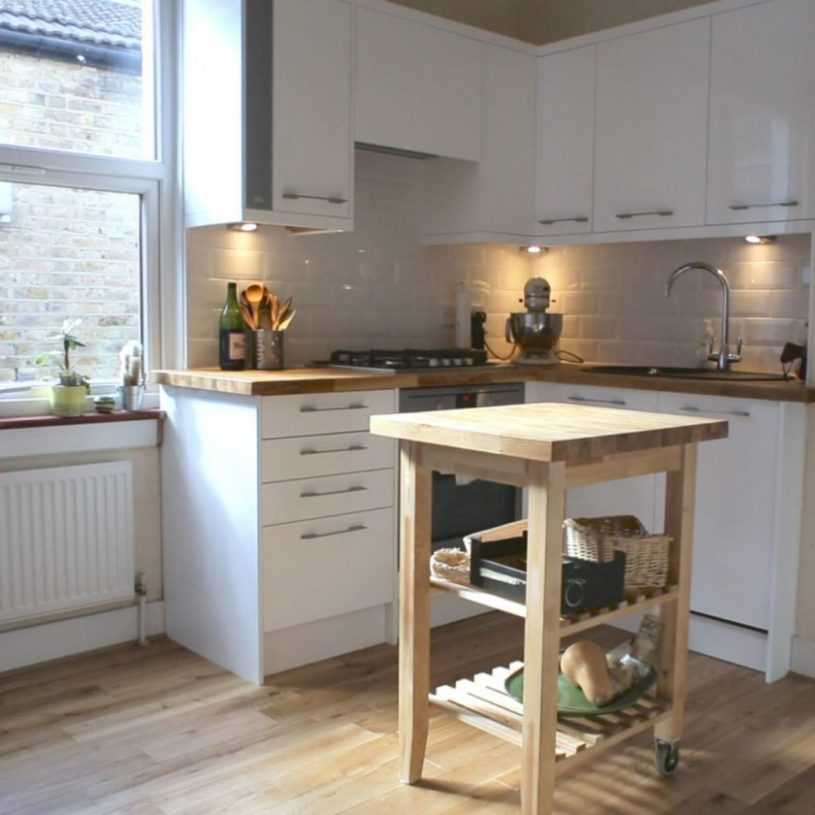 В кухне две главные зоны: зона приготовления пищи и столовая. Если свободная кухня, то создать красивую обеденную зону не составит труда. А вот на стесненной кухне достаточно возле окна расположить небольшой складной столик, который будет продолжать поверхность подоконника. Стулья тоже лучше использовать складные и убирать в сложенном виде в пространство за дверью.