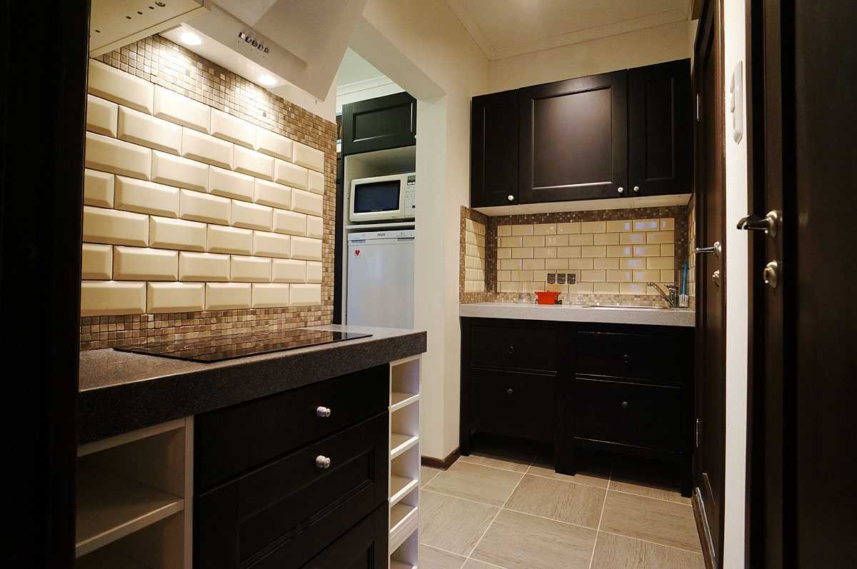 - Нужно продумать освещение. Света должно быть много, так как в большинстве случаев в помещении нет окон. Чтобы не готовить в полутьме, позаботьтесь о нескольких световых сценариях: о подсветке рабочей зоны и полок, о потолочном светильнике.